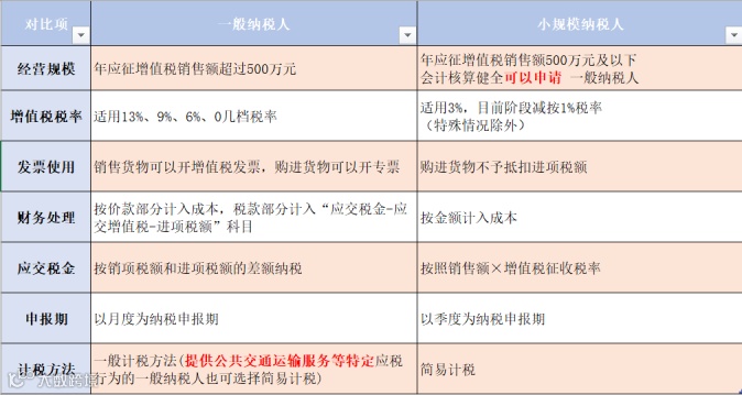 一般纳税人和小规模主要的不同点: