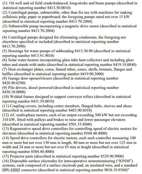 此次没有在排除名单内商品共涉及1个税号下所有商品和34个税号下72个品项的商品,恢复加征25%关税,名单如下: