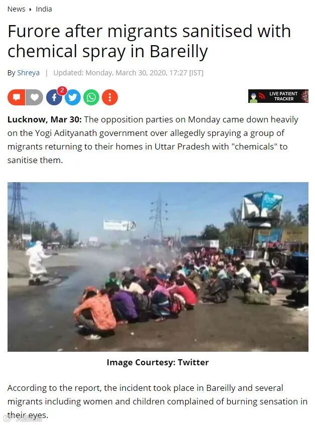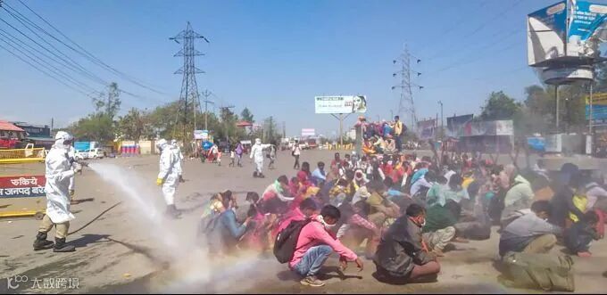 解析:瑜伽士联合政府(Yogi Adityanath)向一群返回北方邦返回家园的移民喷洒了“化学药品”以对他们进行消毒。