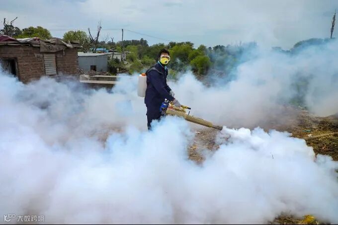 2、他们朝返回家园的移民喷洒消毒剂