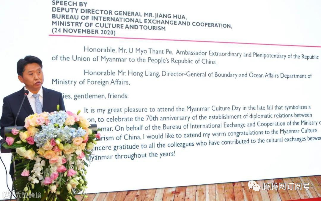 文化旅游部国际交流与合作局副局长江华代表中国和文化旅游部对本公司中缅文化交流做出的贡献表示感谢。