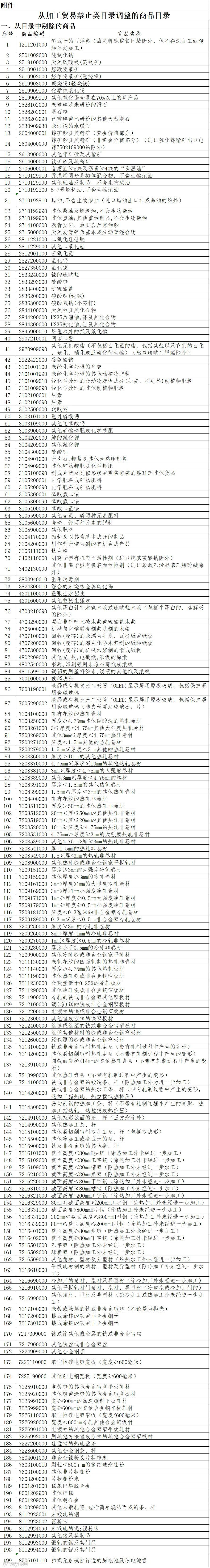 2.7207-7217项下的部分钢材商品剔除。