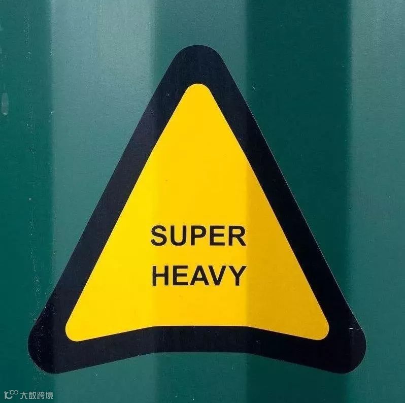 对于超重(总重超过30.48吨)的集装箱,可以看到如下“SUPERHEAVY”的三角形超重标记。