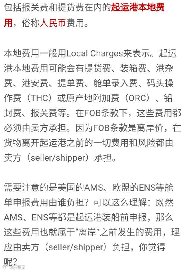 包括清关费和送货费在内的目的港本地费用。