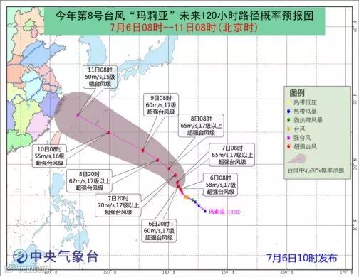 今年第8号台风“玛莉亚”未来120小时路径概率预报图