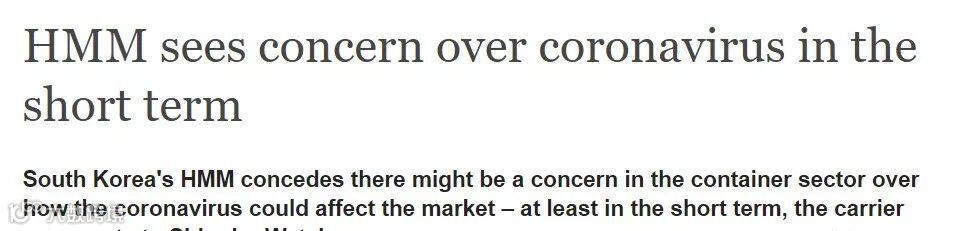 韩国船公司HMM也认为,新型冠状病毒疫情对集装箱行业的影响感到担忧——至少在短期内是这样。