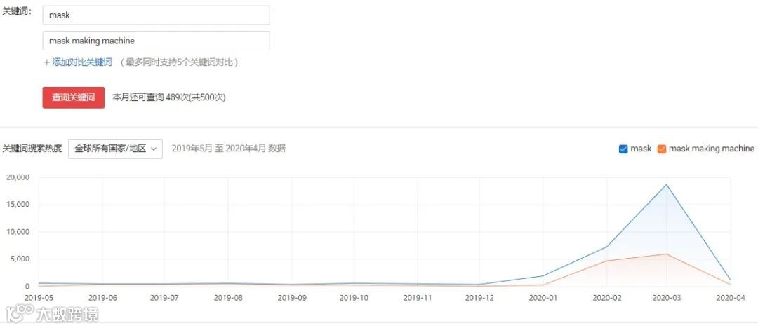 疫情导致各国防疫物资紧缺。从事外贸运营工作的刘枫告诉记者,中国制造网付费会员后台上可以看到,2020年1月起,我国内地以外的国家和地区对“口罩”和“口罩机”的搜索量骤增。