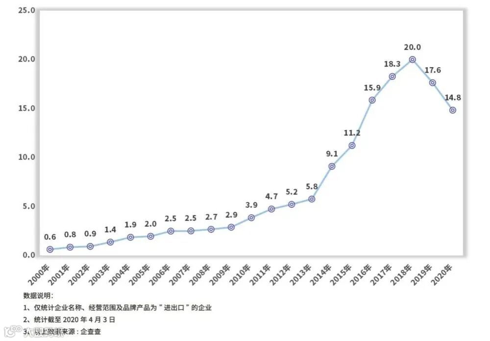 企查查数据显示,截至2020年3月27日,我国进出口企业数量为641万余家,其中在业、存续的企业有520万家。2020年1月至3月全国进出口企业注册量同比下降15.9%。在此期间,还有3.7万家进出口企业注销或吊销。