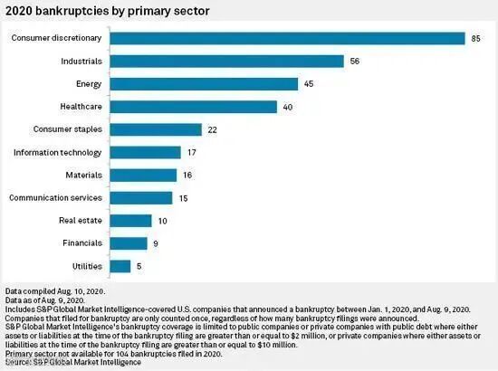 据埃菲社纽约8月13日报道,美国标准普尔全球市场情报公司在一份报告中指出:“在新冠肺炎疫情的背景下,2020年大量部门受到了破产的影响。但以消费者为中心的行业遭受的损害尤为严重。”这份报告包括了资产或债务超过200万美元(1美元约合人民币6.94元)的上市公司和超过1000万美元的私营企业。
