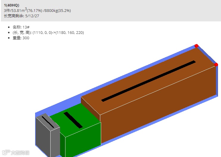 那么通过装箱效果图,可以使我们仓库或者工厂客户在装货前,就了解到货物的摆放情况,使装箱效率大大增加。