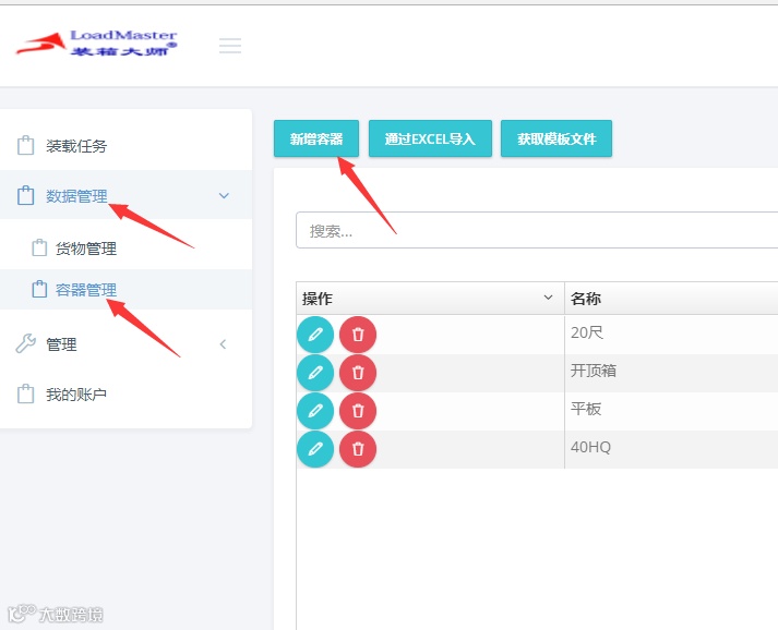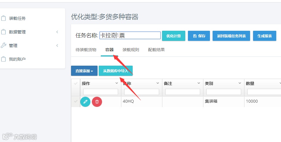 6返回到刚才建的装载任务,选择一个容器。可以从数据库中导入。下图是导入的40HQ的集装箱。
