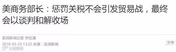 美国商务部长罗斯(Wilbur Ross)接受美国媒体CNBC采访时表示,“(中美)可能会有你来我往的相互攻击,但我相信最终将会以谈判和解收场。”“中国所采取的报复措施不会是全球贸易的终结,而是将各方重新带回谈判桌。在罗斯看来,600亿美元的数字只是中美两国经济的“零头”,特朗普向中国征收惩罚性关税的决定并不会引发中美贸易战。”