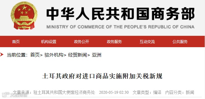 为降低疫情对土经济的消极影响和保护本国工业面临的进口压力,在继4月21日对3000多种进口商品实施附加关税后,5月11日又对包括珠宝、冰箱、洗衣机、空调等超过400种商品征收达30%的附加税,5月20日再次宣布对建筑材料设备、机械设备、钢铁制品、汽车零配件,电气设备、玻璃等产品临时调高对进口商品的税收,一直持续到9月,在10月1日之后税率将会调低至25%。