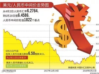 从4月2日,中美拉开贸易战序幕之后,不足3个月时间里,在岸人民币已经狂贬约2300个基点,人民币中间价也一路走跌,从4月2日至6月20日累计跌掉1822个基点。