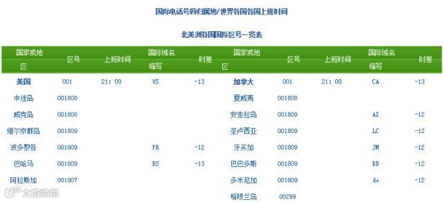 各国区号、上班时间、国际域名查询