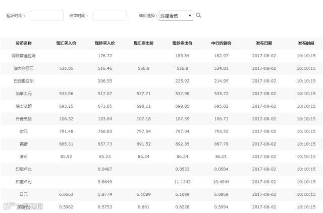 每日外汇牌价查询