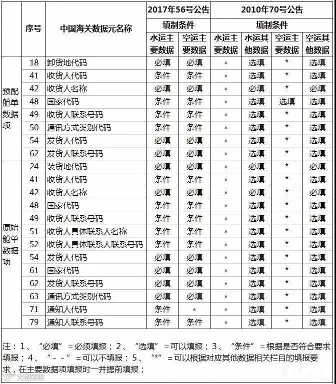 届时,水运、空运舱单数据项传输要求变更,调整的预报舱单数据项如下: