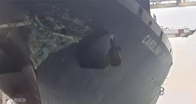 目前该船碰撞受损程度不明,船期延误状态有待更新!
