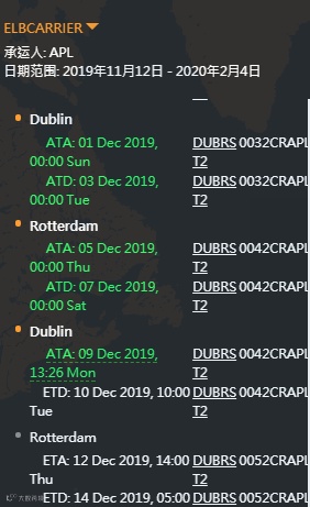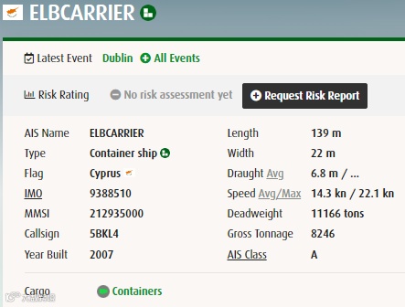 来自大船期数据显示,“ELBCARRIER”号集装箱船涉及Hapag-Lloyd(赫伯罗特)、APL(美国总统)、CMA-CGM(达飞)3家承运人共舱。