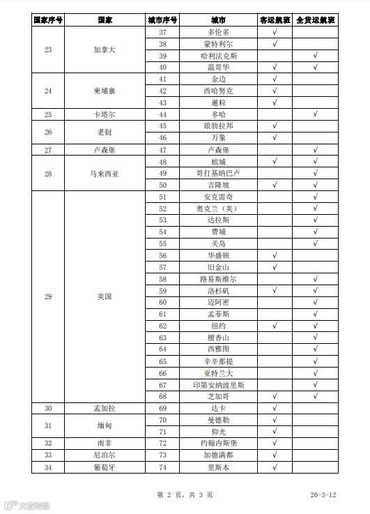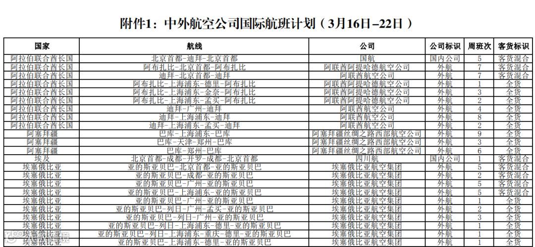 而本周3月9日-15日,计划执行2161班往返航班(客运1291班、全货运870班)。