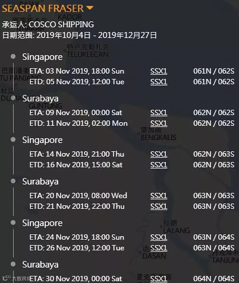 据大船期资料显示,集装箱船“ SEASPAN FRASER”这是一艘往返于泗水-新加坡环路的支线驳船,船上共舱的可能包含以下11家亚洲线知名船公司: