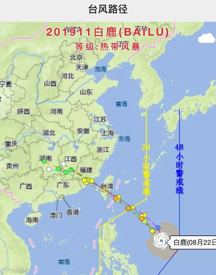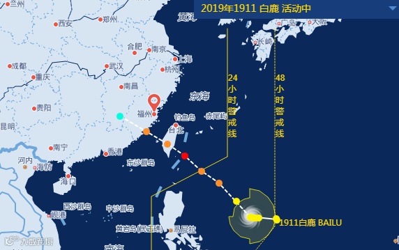 目前,距离台湾省花莲市东南方向约1200公里的洋面上。预计“白鹿”将以每小时20公里左右的速度向西北方向移动,强度逐渐加强,最强可达强热带风暴级或台风级(10-12级,28-35m/s),逐渐向我国东南沿海靠近,并可能在这一带沿海登陆。