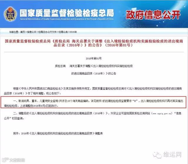 该公告惠及包括广东、浙江、江苏、上海、山东等玩具出口货源地大省,广大外贸和货代企业以后出口玩具,童车,童用安全座椅将会更方便!