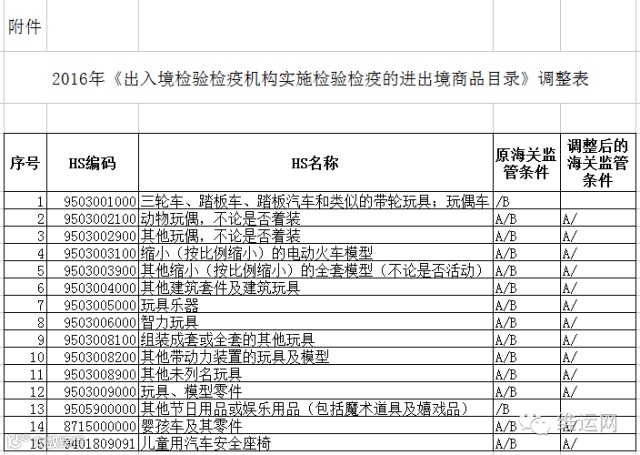 国家质检总局于近日发布最新公告,将于2016年9月1日起,取消玩具、童车、儿童用安全座椅(共涉及15个海关商品编码,详见附件)的出境检验检疫监管要求“B”,出入境检验检疫机构不再对其实施出境检验检疫。