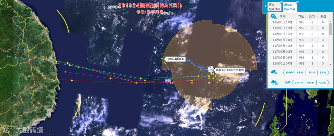 南海大部海域、台湾海峡、巴士海峡、台湾以东洋面、福建沿海、台湾岛西部沿海、广东沿海、海南岛东部沿海、西沙群岛、中沙群岛和南沙群岛将有6-8级大风,其中南海中南部偏东的部分海域有9级大风,阵风10-11级。