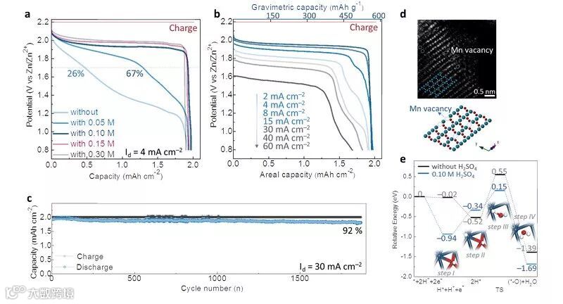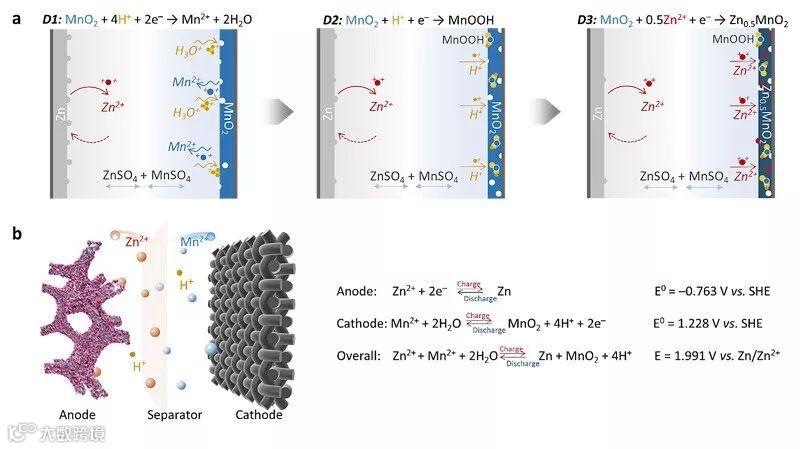 近日,阿德莱德大学的乔世璋教授团队通过对锌离子电池中质子活性的优化,发现并激活了锌离子电池中“潜伏”的一步高电压反应机理,成功提出了正负极均为两电子反应的新型电解Zn-MnO2电池。