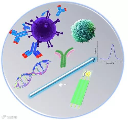 电化学生物传感器(electrochemical biosensor)是一种测试平台基于通过电信号来检测生物标记物,例如免疫蛋白分析、基因测序和细胞传感。近年来,电化学传感器的发展格外强劲,因其拥有简单的传感手段、多样的生物表面的建造策略以及较为便宜的制作成本,陆续有电化学传感器实际得应用在临床检测(Point-of-care)。