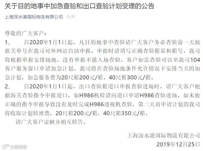 导读:点击上方“蓝色文字” 一起涨姿势!位外贸货代朋友们注意了!上海港发布了关于目的地事中加急查验和出口查验计划受
