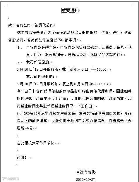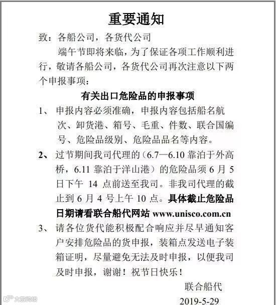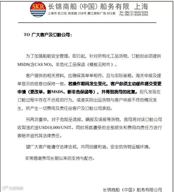不仅查验力度可以预见的将加强,接下来船公司对于危险品的管控,也会更加严格。最近,各船公司、船代都发布或者重申了和危险品订舱相关的通知,我们为大家汇总如下: