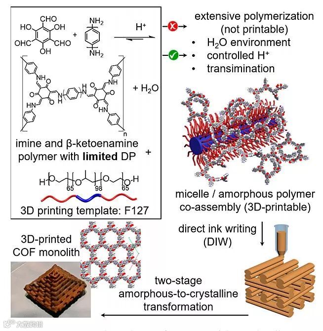 图2. 3D打印COF的基本设计思路。图片来源:J. Am. Chem. Soc.