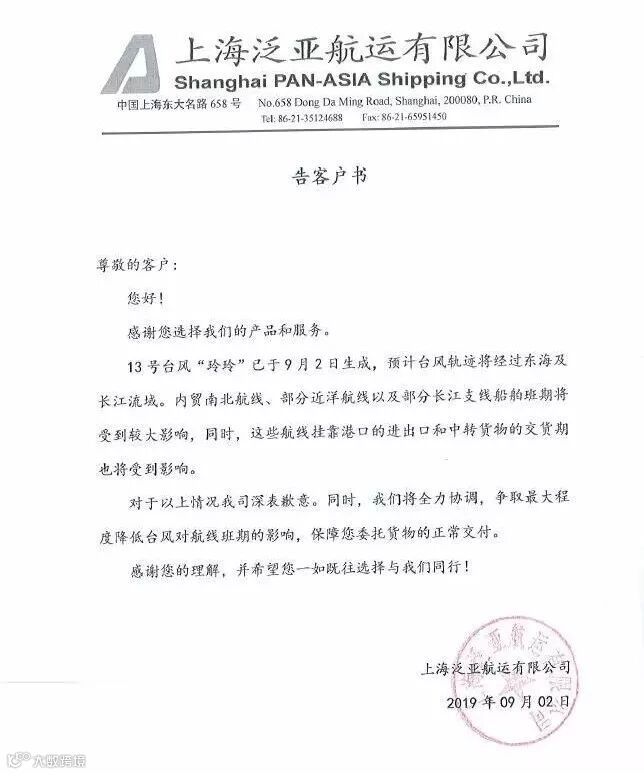 从目前的预报来看,“玲玲”不到24小时即将影响华东沿海。各位货代、货主们还请注意关注台风动向以及港区信息动态。合理安排出货,避免因为货物延误、货物受损等带来不必要的损失!望转发周知~