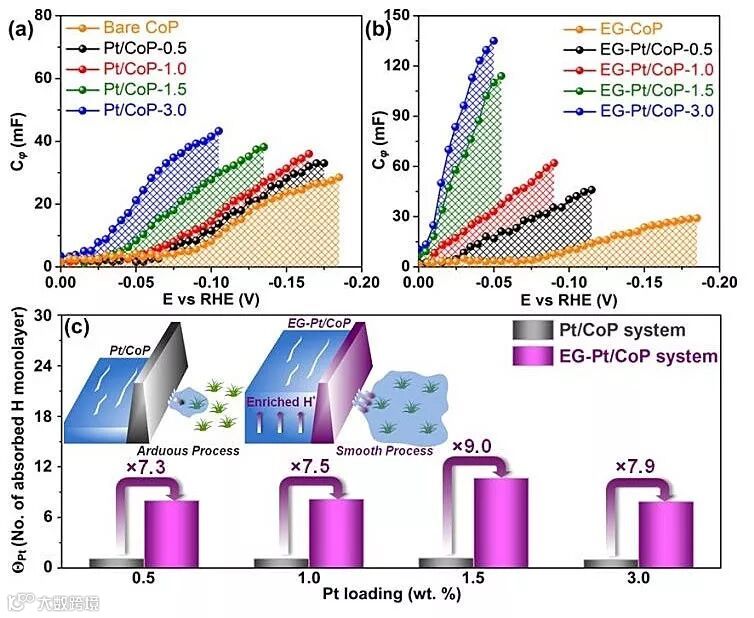 综上,西安交通大学的研究团队利用独特的EG配体环境实现质子浓缩和氢溢流,以改善负载少量Pt的CoP的HER催化动力学。EG可提高Pt的局部质子浓度,优化界面氢迁移路径并确保随后富氢Pt到贫氢CoP的有效氢溢流。此外,EG还可调节催化中心的局部电子结构以获得一系列H*吸附自由能接近于零的Pt/CoP界面位点,有利于氢气产生。这一设计理念可在CoP上有效地实现质子吸附,改善HER动力学并提供高催化性能,也适用于其他基于过渡金属的电催化析氢过程。