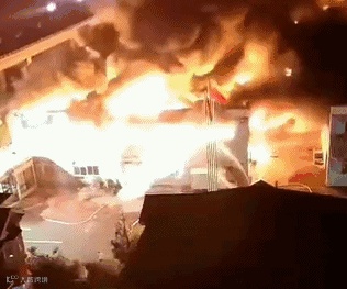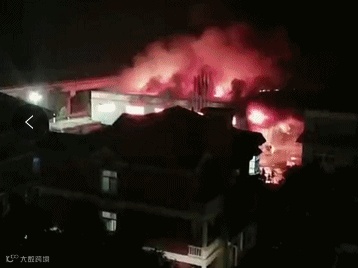据网友发来的视频看,燃烧冲起来的熊熊火焰,将黑夜照得通红。发生火灾的是一排极长的厂房,火焰从各个窗口“喷射”而出。