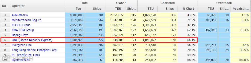 ONE 成立于于2017年7月,是由 NYK、MOL 和 K Line 合并而成,并于去年4月正式运营。根据ALphaliner提供的数据显示,目前ONE为世界运力排名第六大集装箱航运公司,旗下运力接近159万TEU,自有加租赁船舶共计222艘,如果该笔10艘大船订单最终确认,赫伯罗特运力还保持不变(目前运力为169万TEU),那么ONE将超越赫伯罗特跻身世界第五大集运公司。