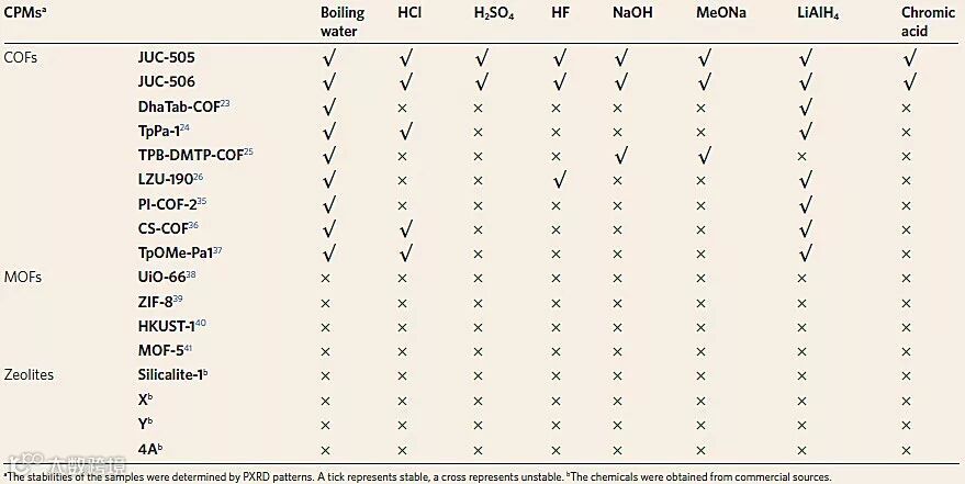 PAE-COFs与其他材料的稳定性比较。图片来源:Nat. Chem.