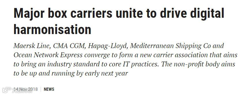 《劳氏日报》也对该消息进行报道,马士基、地中海航运、达飞集团、赫伯罗特、海洋网联船务(ONE)计划成立新协会,旨在促进集装箱航运业的信息技术(IT)标准化。