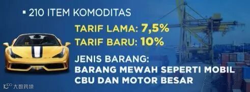 9月5日,跌跌不休的印尼盾跌出了1998年亚洲金融危机以来最低水平,印尼政府表示,印尼盾下跌到20年来的新低是外部因素所致,当务之急是增加投资和出口,以缩小经常账目赤字。印尼政府决定9月6日起对1147种主要消费品包括化妆品、家用电器和部分汽车等进口税将从原本2.5%~7.5%的税率增加至7.5%~10%。