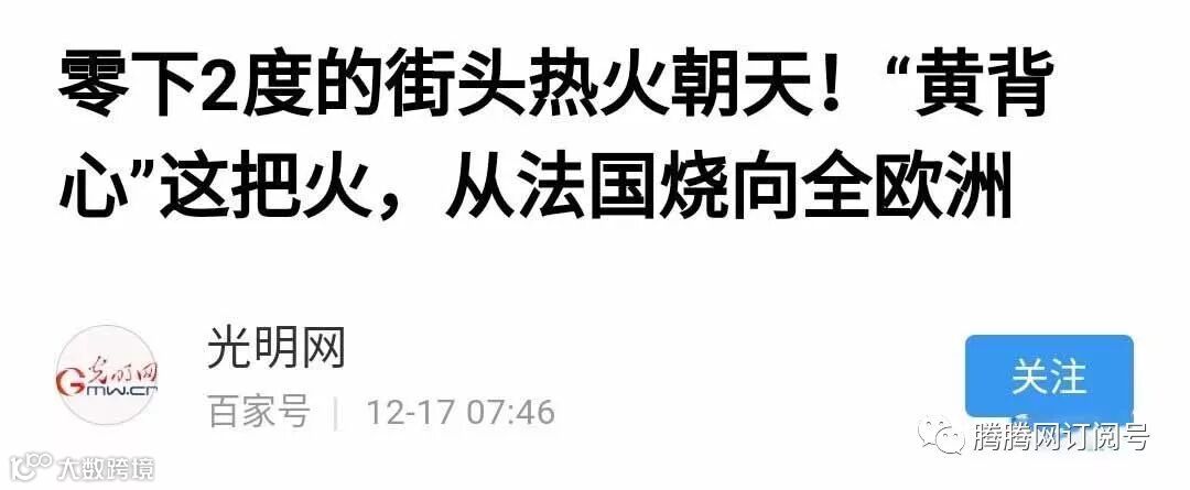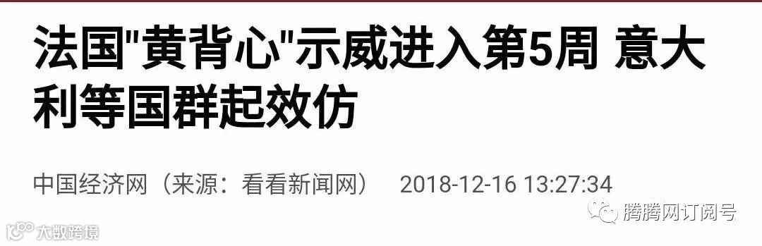 “黄背心”运动进入第四个周末时,除了意大利以外,比利时、荷兰、德国等国也有群众响应这场发源自法国的抗议活动、"黄背心"示威浪潮蔓延至欧洲多国,整个欧洲大陆都笼罩在对经济下滑、税收增加的不满情绪当中!