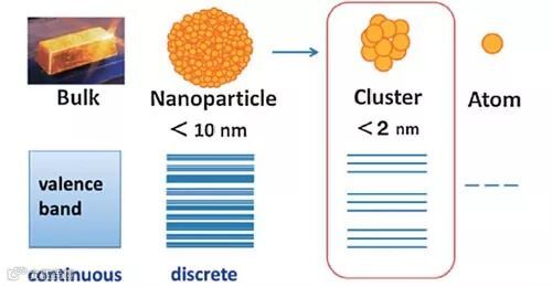 A:在这项工作中我们揭示了一些常规催化方法或以前的催化中所无法揭示的信息。比如,我们发现在最小的金纳米团簇上的催化机理与比它只多三个金原子的团簇有很大不同,前者由于特有的小尺寸和特殊的空间结构,其产物生成遵循竞争模型,而更大些的团簇或常规纳米粒子上的催化反应则按照非竞争模型进行。另外,我们也观察到了纳米团簇所特有的量子尺寸效应与催化性能之间的相关性。这些揭示的新信息,加深和完善了我们在多尺度范围内对纳米催化的理解与认识,而这些新的认识有望指导我们根据不同需要设计并制备出功能更高效、专一的高活性催化材料。
