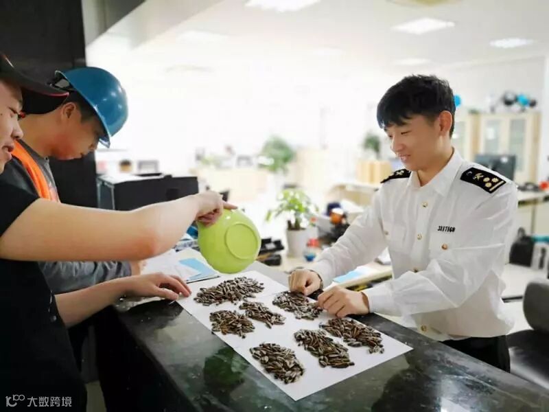大榭海关关员在现场清点被复运进境的瓜子样品