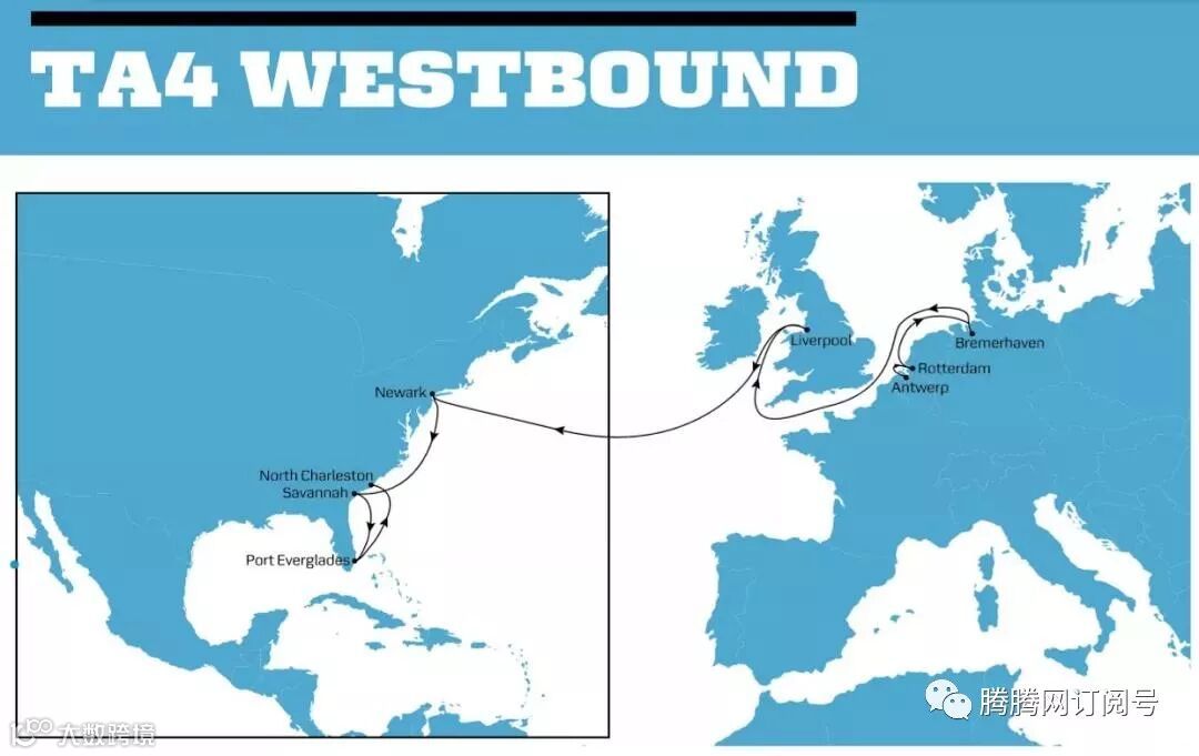 该服务将使用安特卫普,鹿特丹,不来梅港,利物浦,纽瓦克,萨凡纳,埃弗格雷兹港和北查尔斯顿的港口轮换。