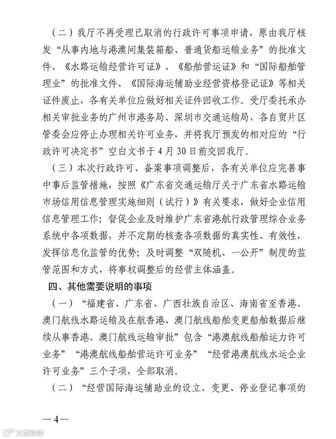 二、从事内地与港澳间集装箱船、普通货船运输业务许可