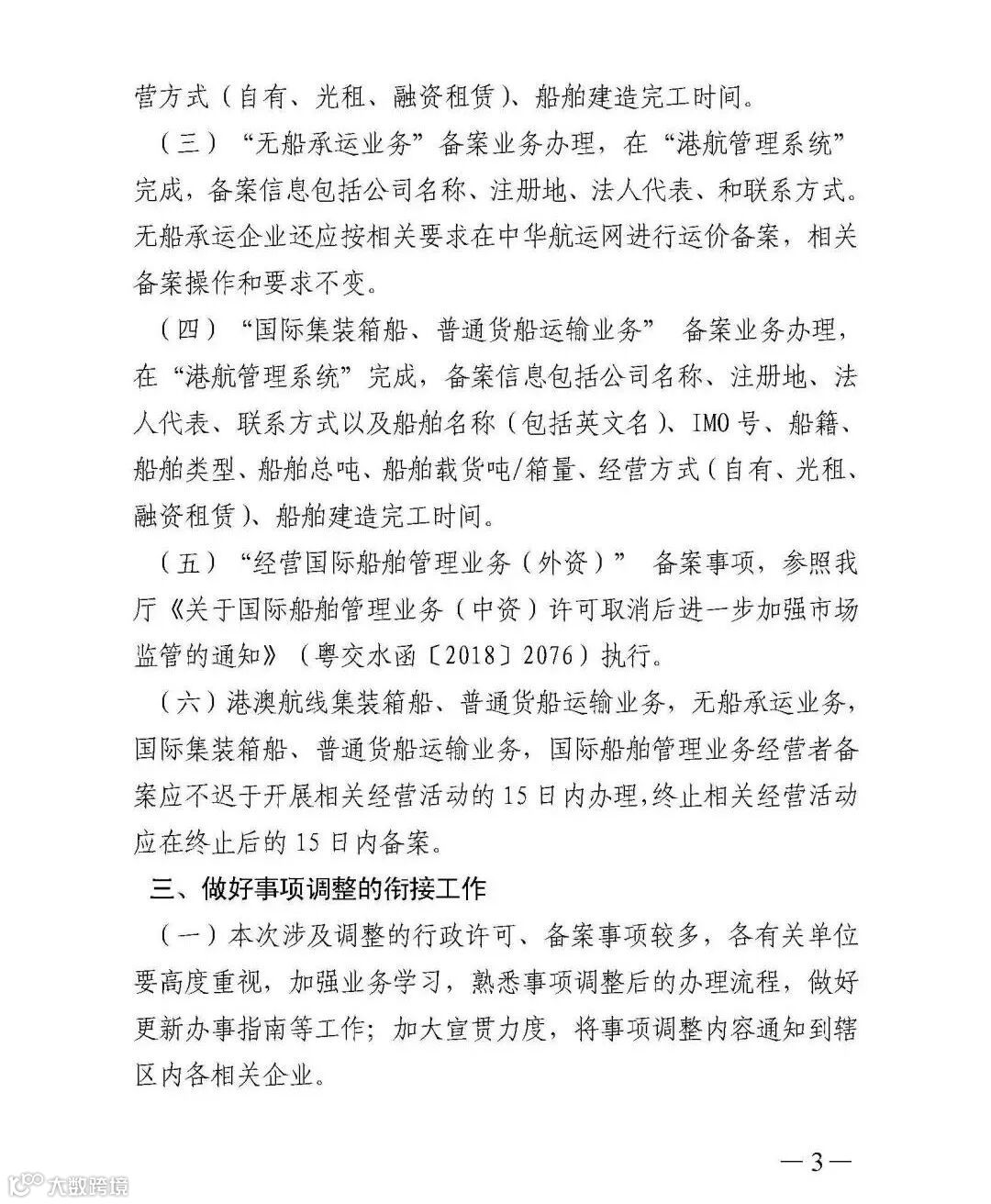 2、优化对国际班轮运输集装箱业务的审批服务,加强事中事后监管。