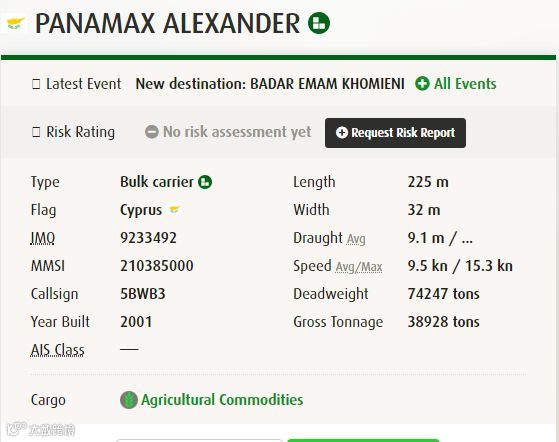 Bulk carrier PANAMAX ALEXANDER, IMO 9233492, dwt 74247, built 2001, flag Cyprus, manager Cyprus Sea Lines.