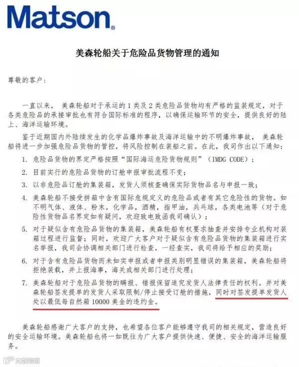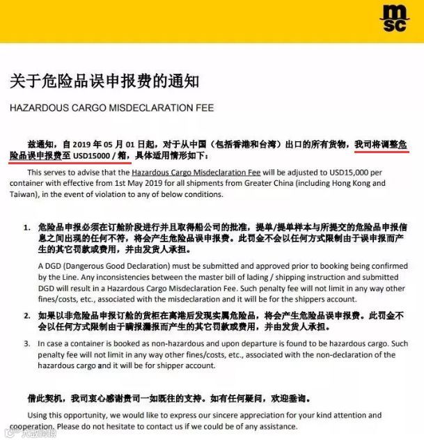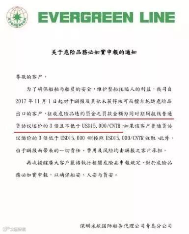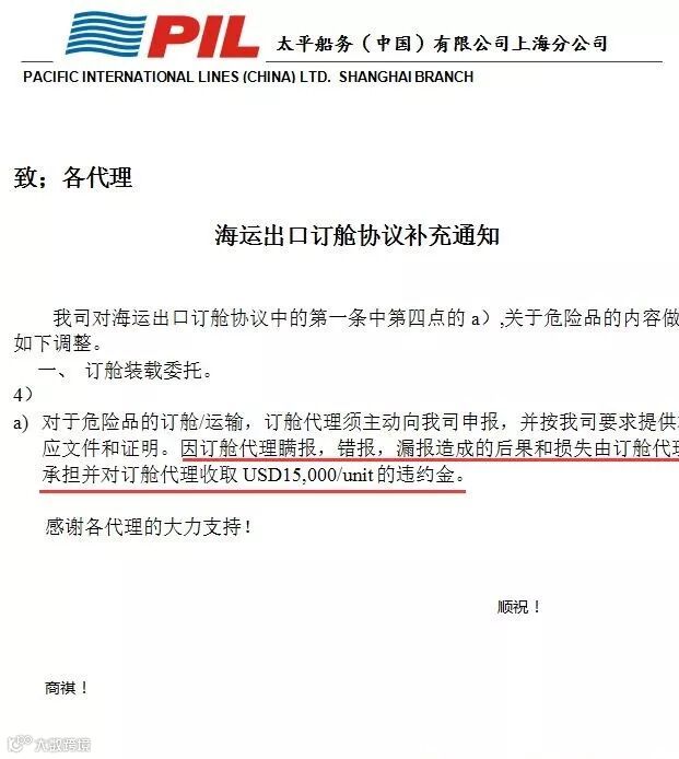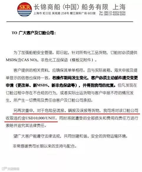 这里为大家收集汇总了最新各大船公司、船代、港口集团等对危险品瞒报相关的通告,最高可能被罚15000USD/箱!