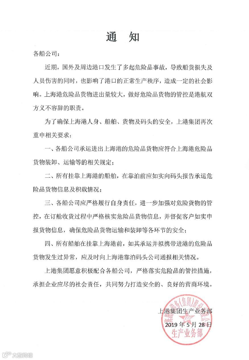 近期,国外及周边港口发生多起危险品事故,导致船货损失及人员伤害,同时也影响了港口正常生产秩序,造成一定社会影响。上海港危险品货物进出量较大,上港集团再次重申了“关于危险品货物的相关要求”。具体通知如下: